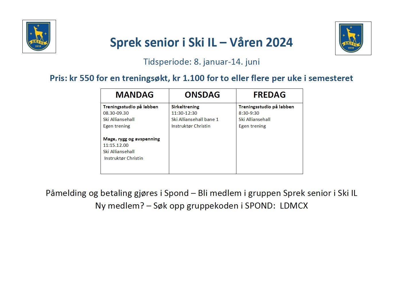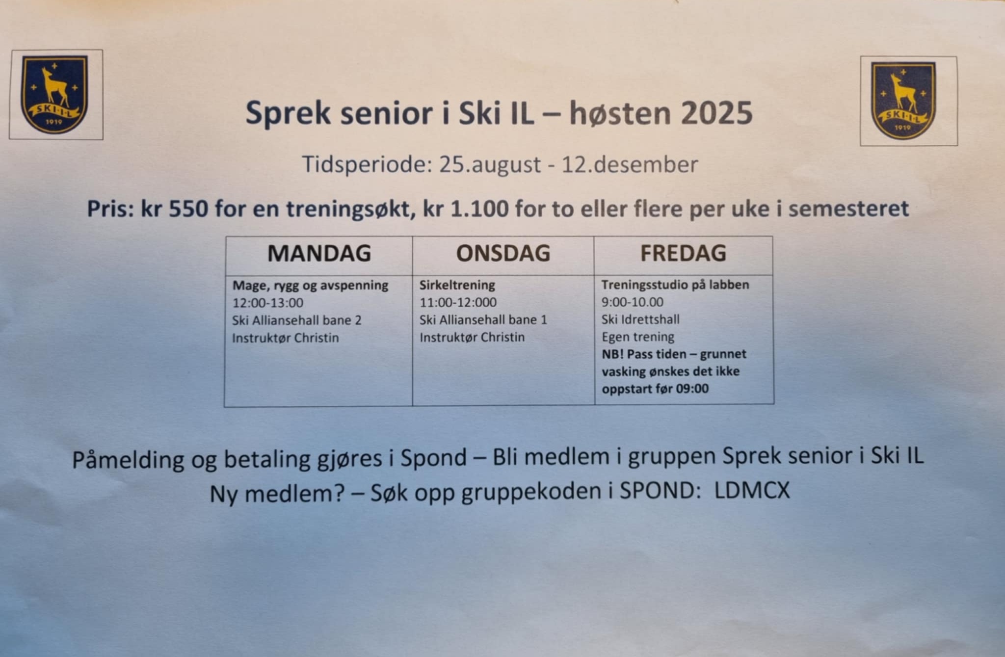 Sted: Ski Alliansehall 2 etg