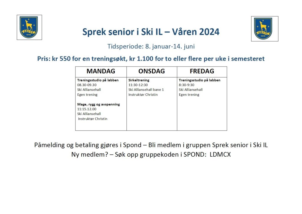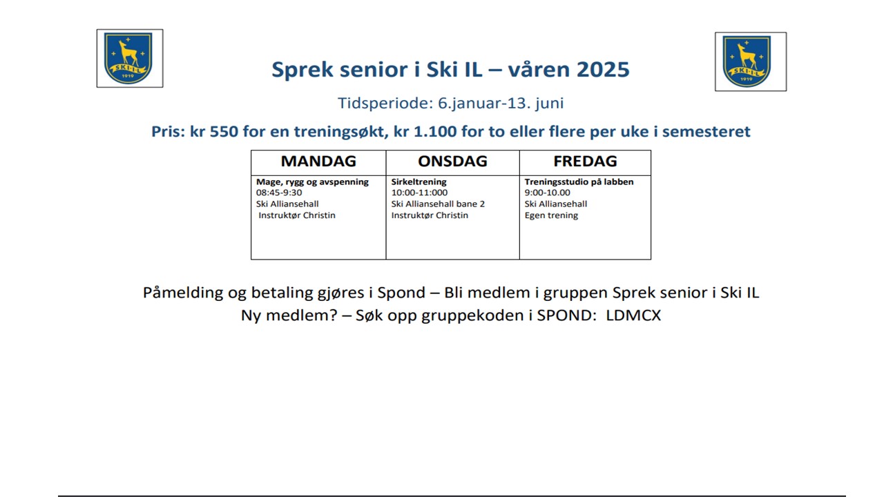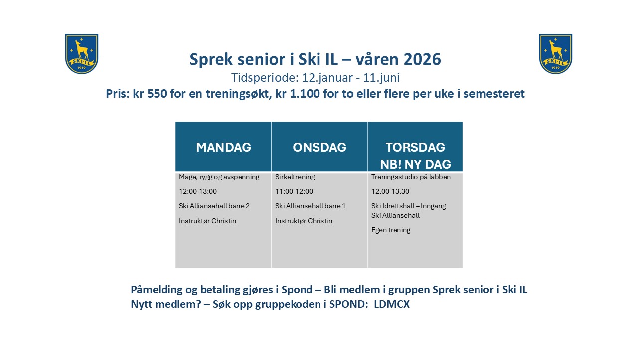 Årsmøte i Ski IL Alliansen tirsdag 25. mars 2025 kl. 18:00.