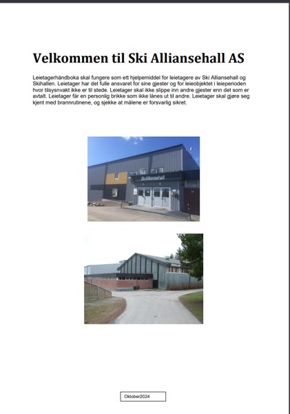 Informasjon om hva som skal gjøres for å leie/benytte seg av i Ski Alliansehall og Skihallen