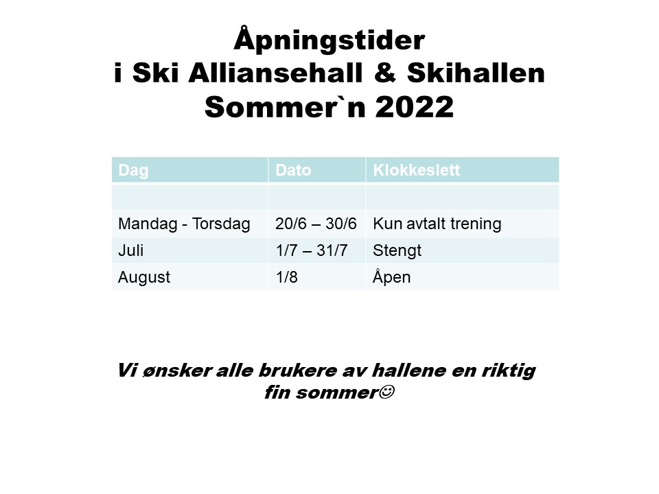 • Åpningstider i Ski Alliansehall/Skihallen Julen 2025
